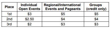 *Regardless of awards given, credits are not available for any places lower than 3rd.